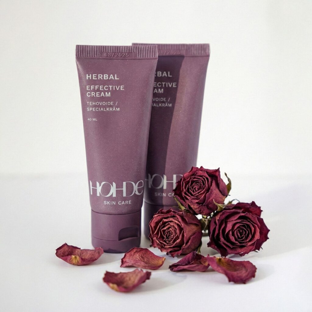 Herbal Tehovoiteen kasvipohjaiset aktiiviaineet ravitsevat, rauhoittavat ja suojaavat ihoa. Niittyhumala, puna-apilan bioflavonoidit ja pihatähtimö tukevat ihon hyvinvointia ja auttavat ihoa tuntumaan pehmeämmältä sekä näyttämään tasaisemmalta.